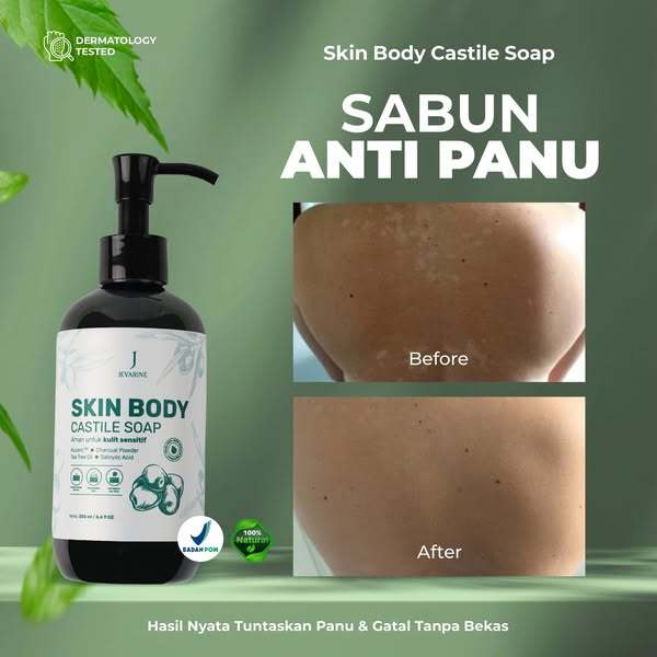Jevarine Castile Soap (250ml) - 7X Lebih Cepat Atasi Panu, Jerawat Punggung & Eksim, Sabun Panu
