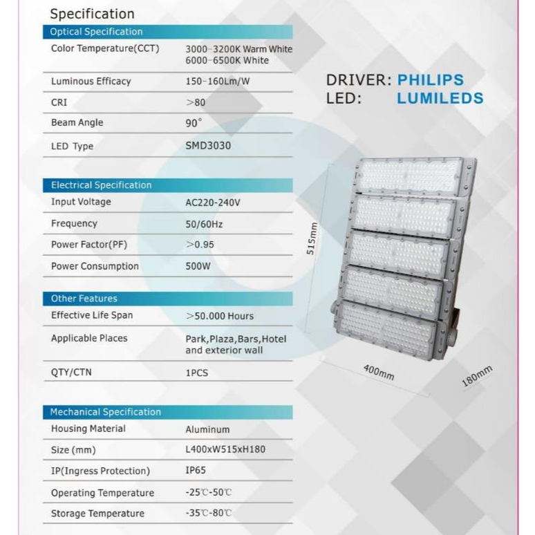 Lampu Sorot LED High Mast 500w 500 Watt Phillips