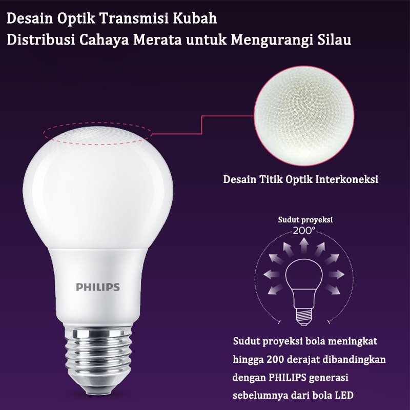 Philips Lampu Led Bulb 12W 4pcs 6500K Putih Cahaya nyaman low loss rumah Led Bulb