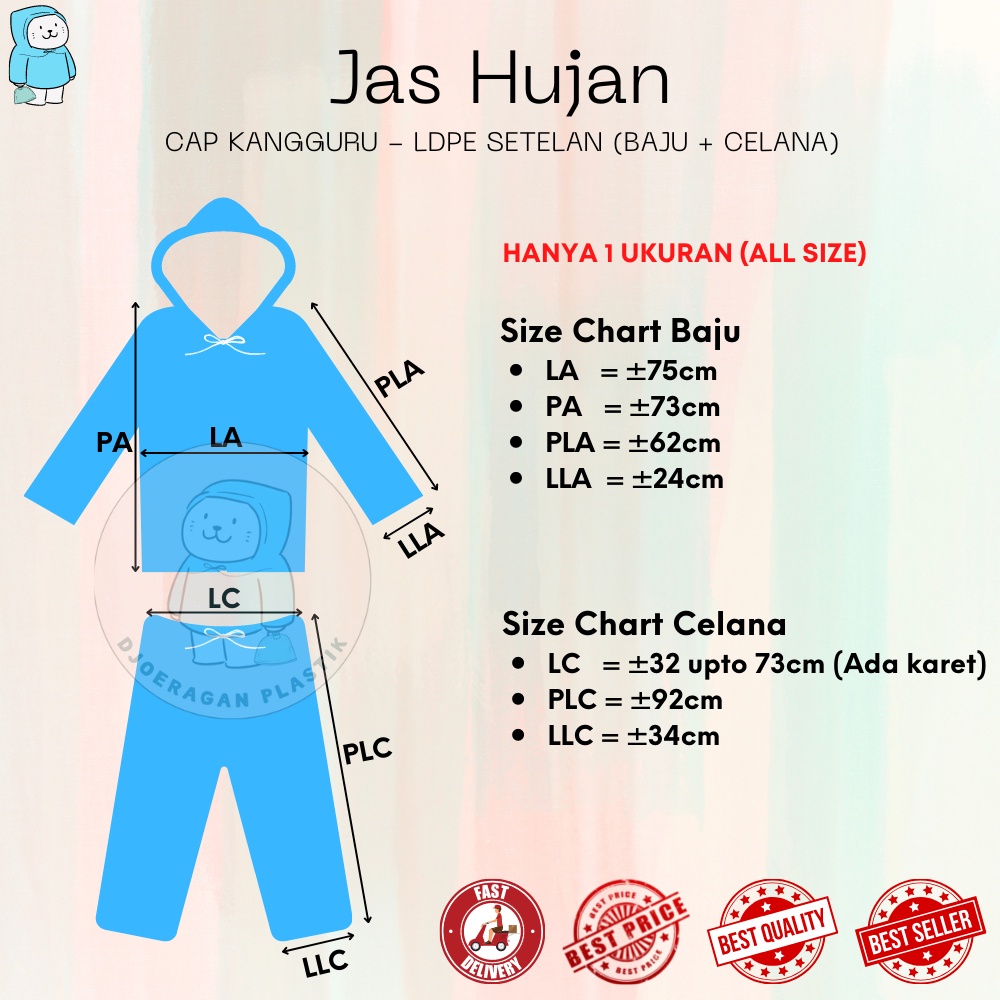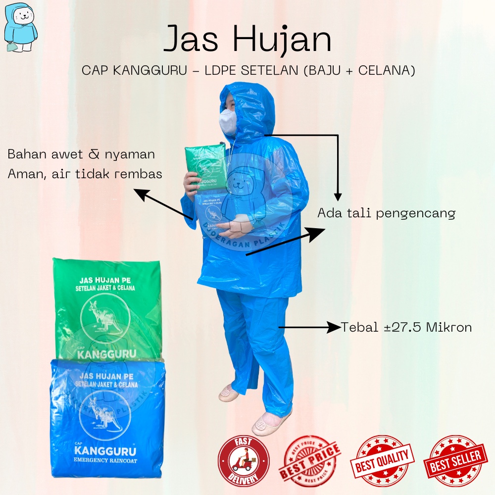 [1Lusin = 12Pcs] Jas Hujan LDPE Setelan Baju + Celana Cap Kangguru | Mantol | Mantel | Raincoat | Rain Cover