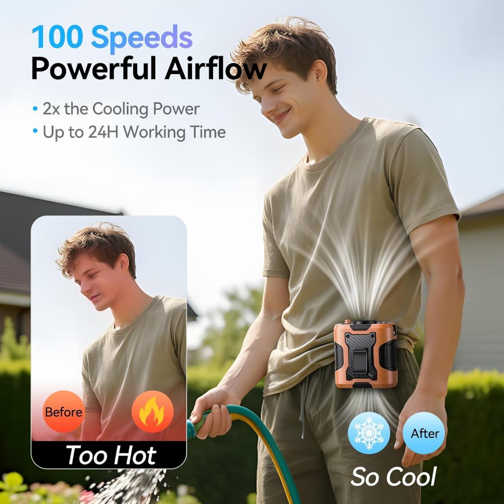 Kipas Angin Portable Mini Fan 30000mAh Powerbank 100 Kecepatan Bisa Gantung Di Pinggang Tampilan Level Baterai Lampu LED