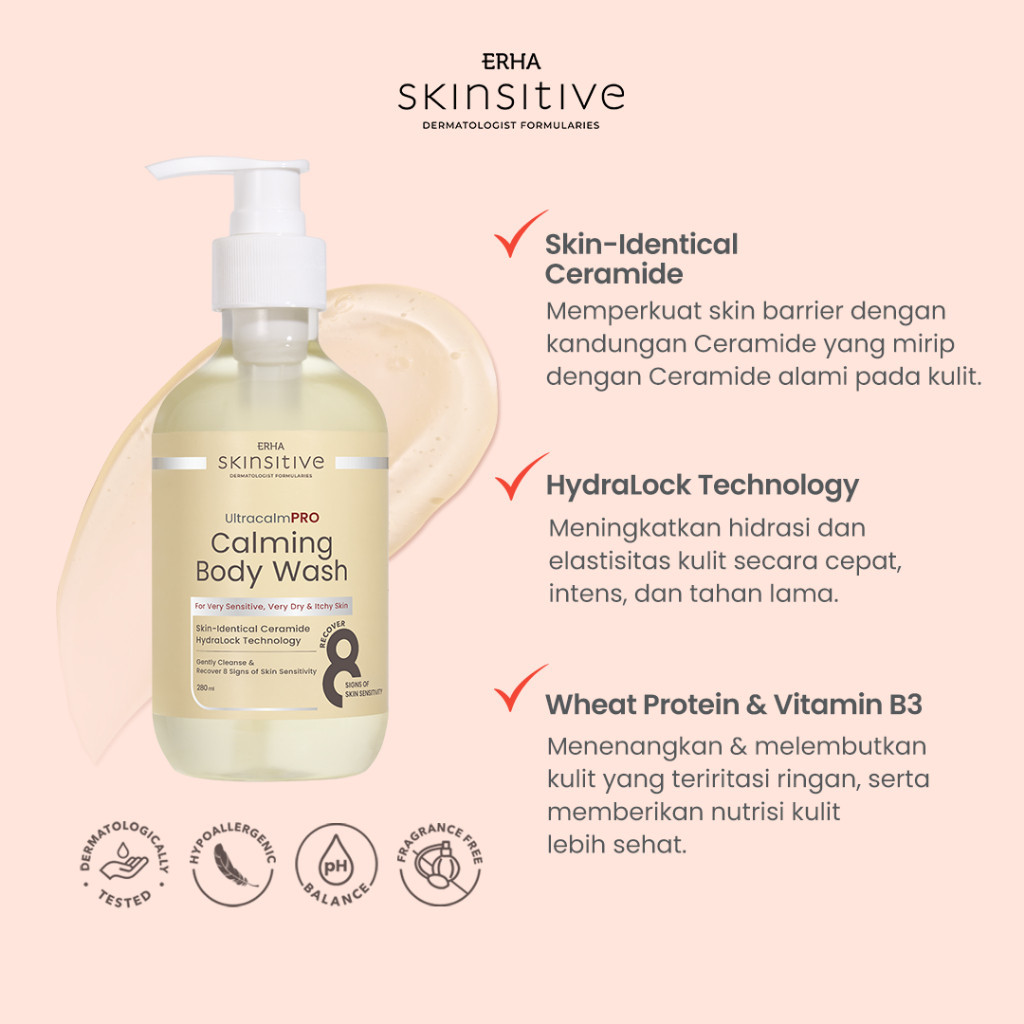 ERHA Skinsitive Ultracalm PRO Calming Body Wash 280ml - Sabun Badan Kulit Kering, Sensitif dan Gatal