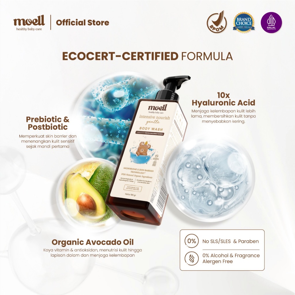 Moell Intensive Nourish Gentle Body Wash Bayi Anak 185gr Kulit Kering dan Sensitif - Sabun Mandi Tanpa SLS & Alkohol - M