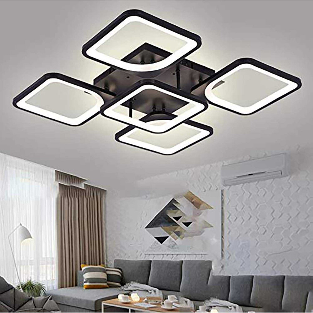 Lampu Plafon Hias LED 5 Kotak Chandelier Remote 3 Color Dimmable 60W