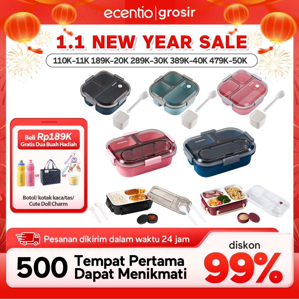 [Anti Tumpah] ecentio 3 Grid lunch box 1100ml+100ml Kotak Makan Anti Tumpah bento food container BPA free