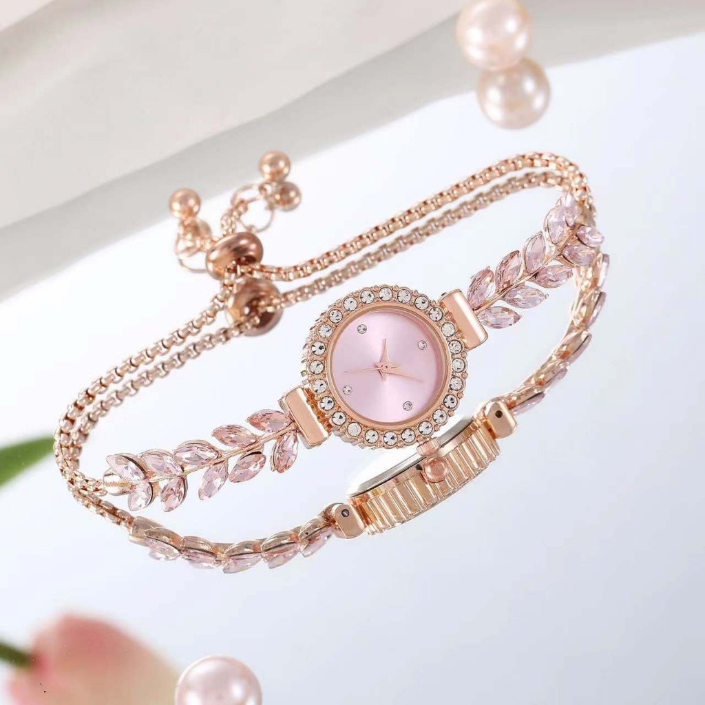 Jam Tangan Wanita Gaya Korea Model Gelang Serut Bulat Crystal Stainless