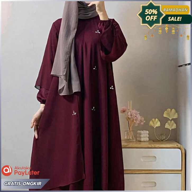 Gamis Lebaran 2026 Baju Muslim Wanita Sabrina Dress Gamis Wanita Dewasa Baju Gamis Abaya Marwah Bahan Ceruty Premium Ade