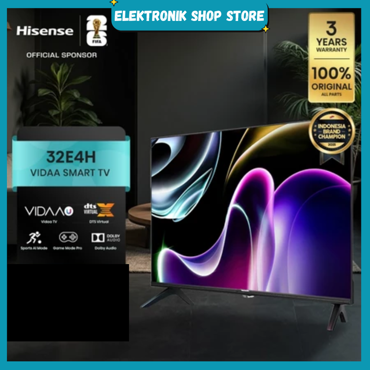 TV HISENSE 32 INCH 32E4H VIDAA SMART DIGITAL TV 32 INCH HD DESAIN BAZELLES DTS V X & DOLBY AUDIO YOUTUBE/NETFLIX/PRIME