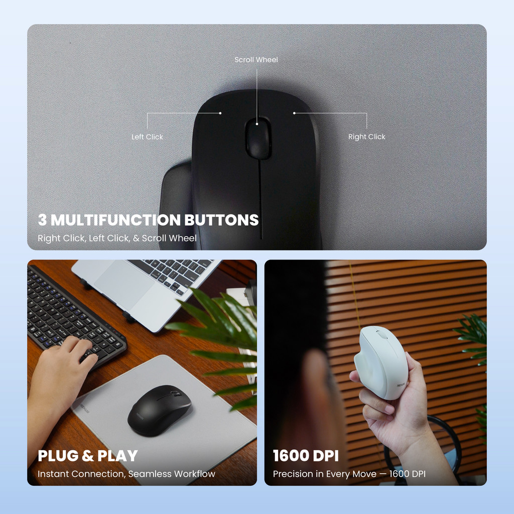 Rexus QB300 V2 Dual Mode Wireless Mouse Office Kantor - Ergonomic Shape Silent Click