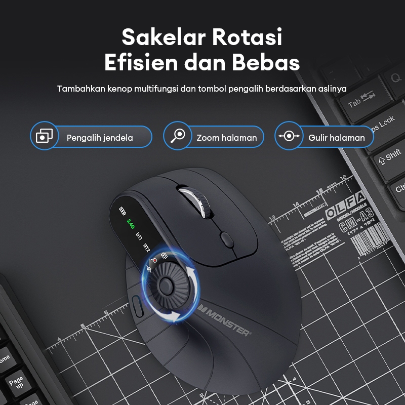 Monster M2 PRO 2.4G Mouse Wireless Bluetooth Vertical Ergonomic Dual Mode 2.4G+BT Four Dpi Switch 500mAh Large Battery