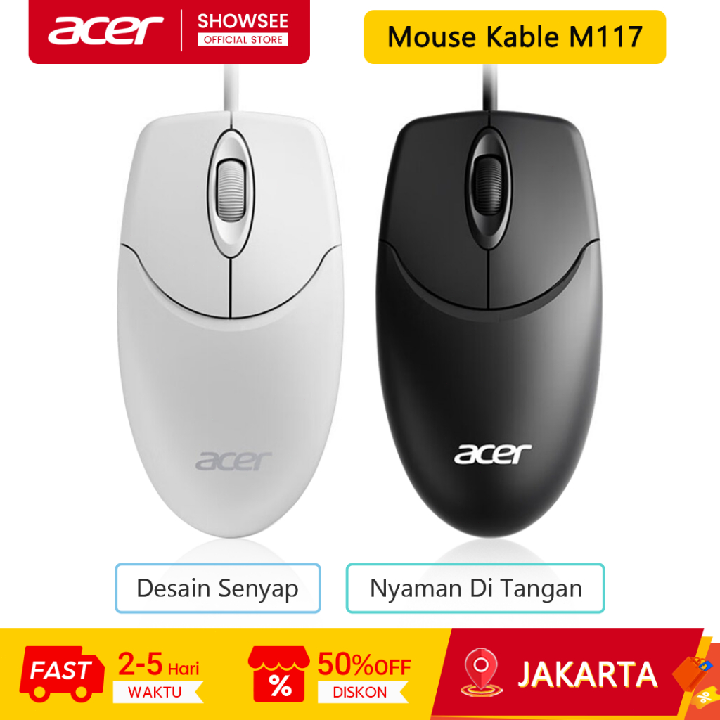 Acer Mouse Kabel M117 Desain Senyap Nyaman Di Tangan Mouse Laptop Mouse Gaming