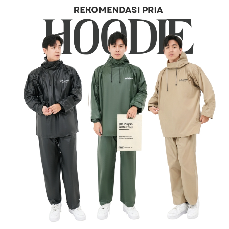 TERBARU JAS HUJAN HOODIE PRIA WANITA KAIN PVC KARET TAHAN ANGIN ANTI REMBES RAINCOAT