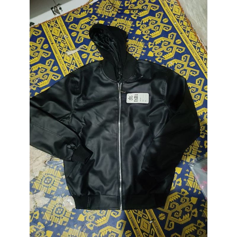 Jaket kulit pria bomber hoodie/ jaket kulit sintetis premium terbaru terlaris