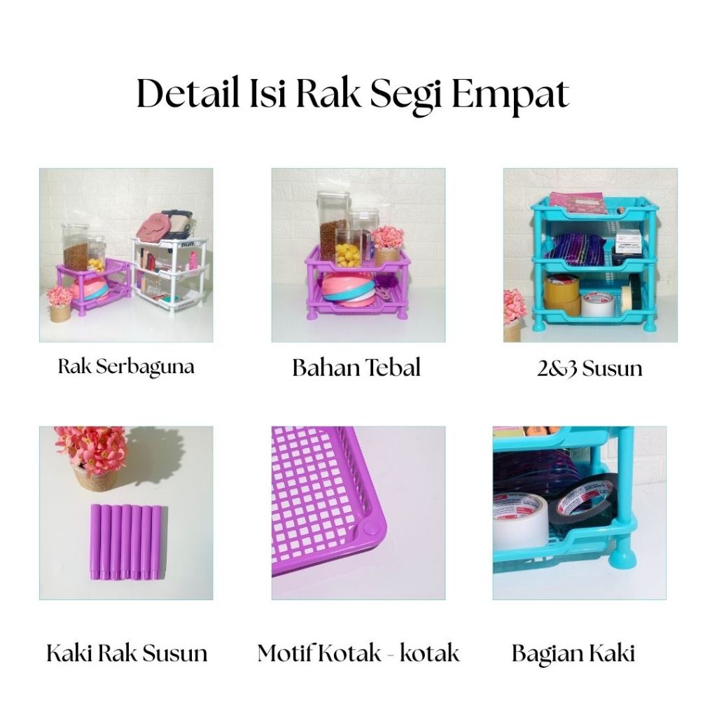 RAK SEGI EMPAT PLASTIK SERBAGUNA 2 DAN 3 SUSUN Tempat Penyimpanan Alat Tulis Obat Bumbu Dapur Murah