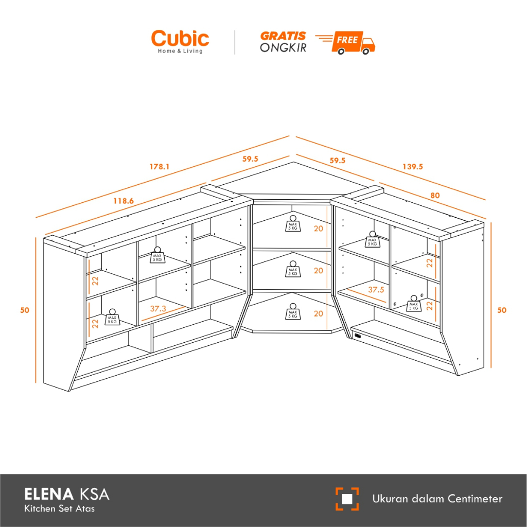 Cubic Kitchen Set 3 Pintu Minimalis / Rak Atas Dapur / ELENA AVE KSA 3P - Hitam / Putih