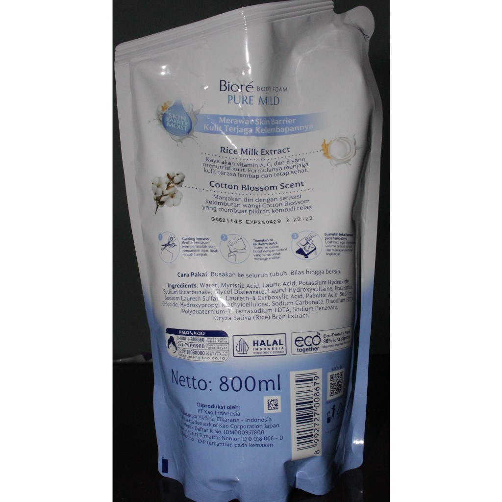 Biore Body Foam Pure Mild Glowing Moist Skin Look with Rice Milk Extract - 800 ml