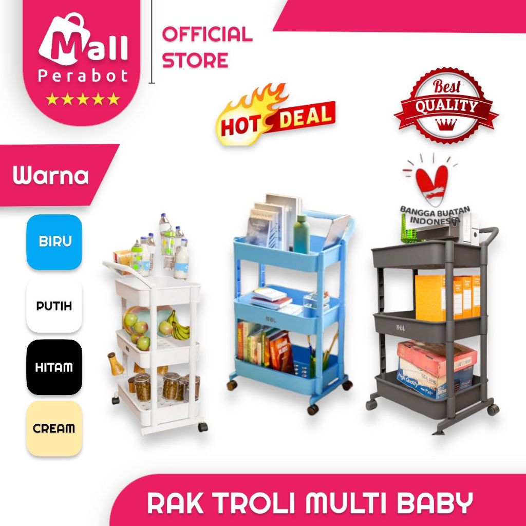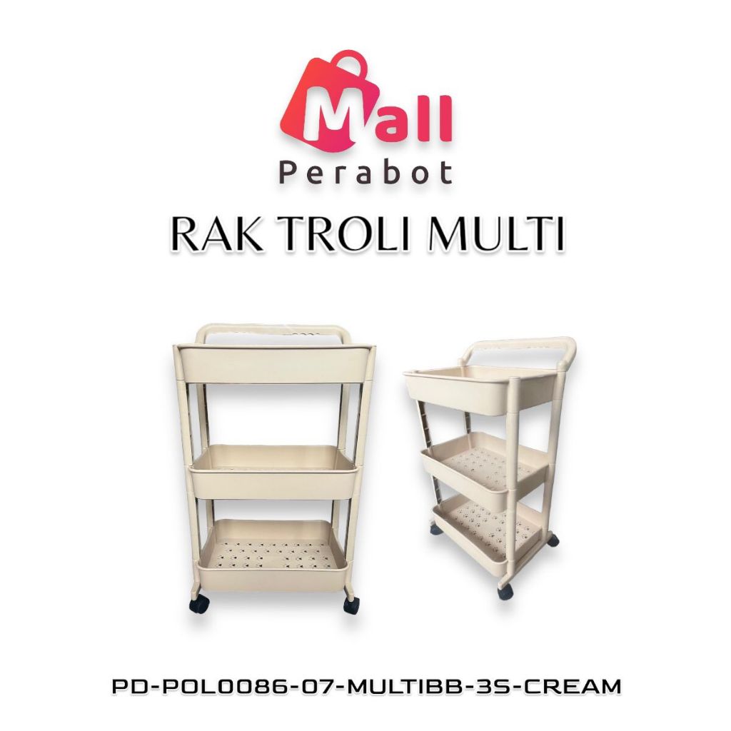 Rak Troli Plastik Serbaguna Persegi 3 Susun Dapur Salon Penyimpanan Kamar Mandi Pegangan