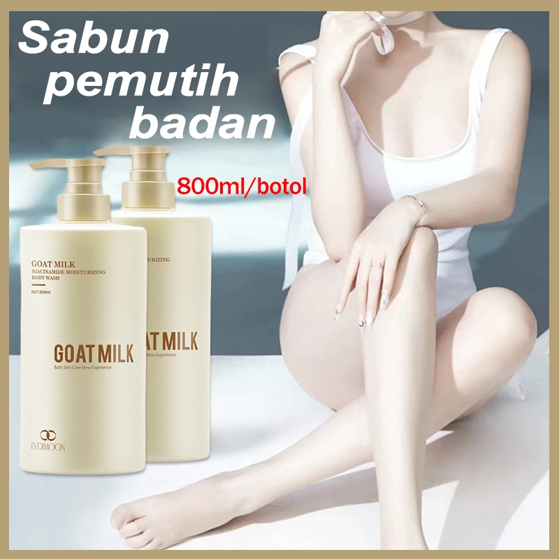 BPOM Sabun pemutih badan permanen Sabun susu kambing Sabun mandi cair 800ML Goat milk body wash sabun mandi pemutih bada