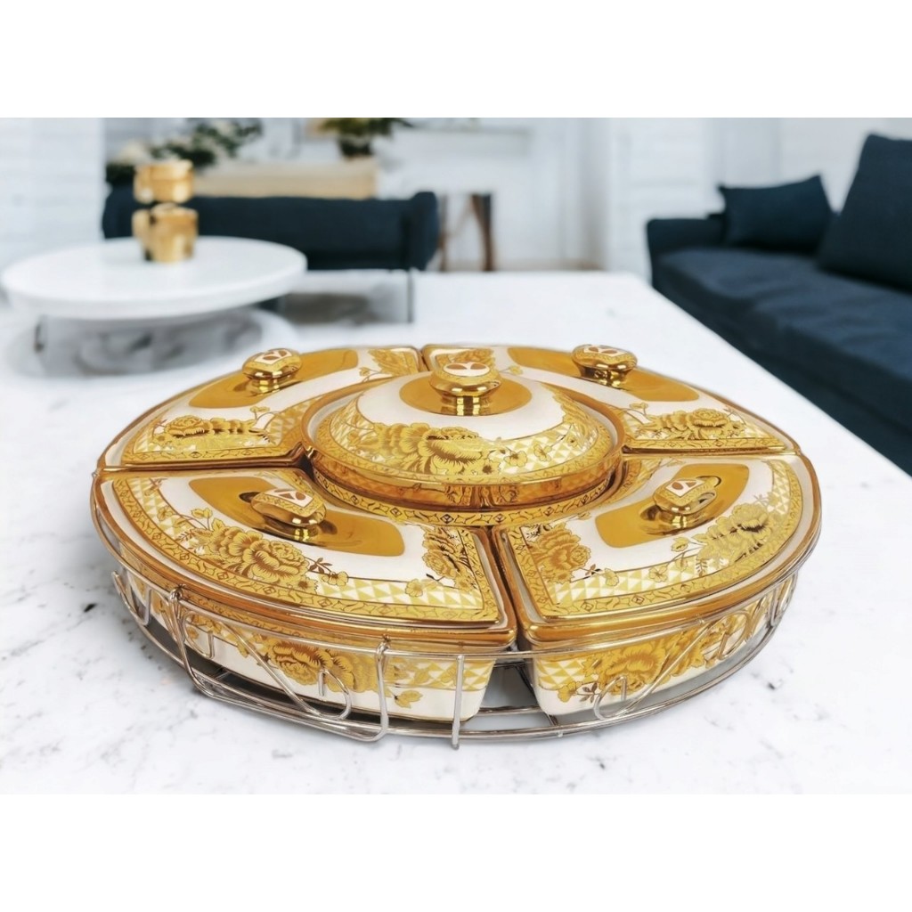 prasmanan set keramik Prasmanan Keramik Bulat Vicenza Original - H14 Garansi Pecah! + 5 Buah Sendok dan Rak Roda Pemutar