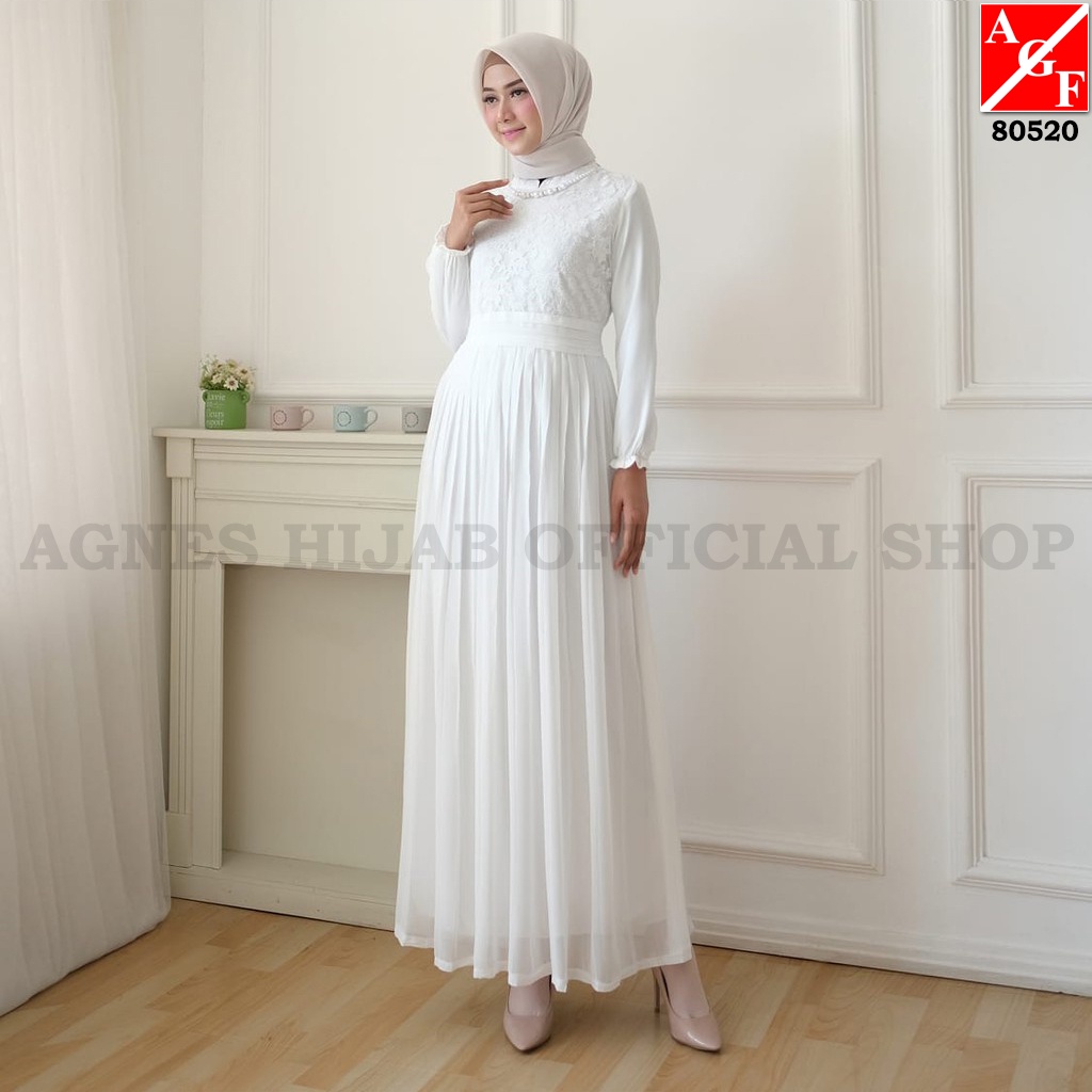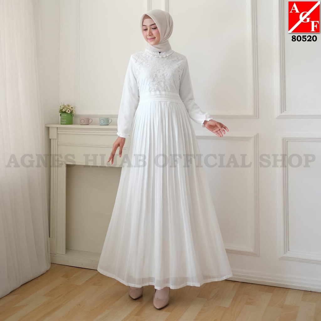 Agnes Hijab - Yasmin Dress Gamis Lebaran 2026 Idul Fitri Putih Premium Etnik Aesthetic Wanita Dewasa Remaja Elegan Mewah Abaya Turkey