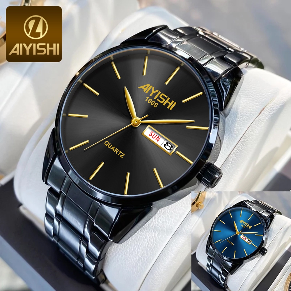 AIYISHI Jam Tangan Pria Anti Air Original Tahan Luminous Fashion Analog Stainless Steel Watch Men Model 1608