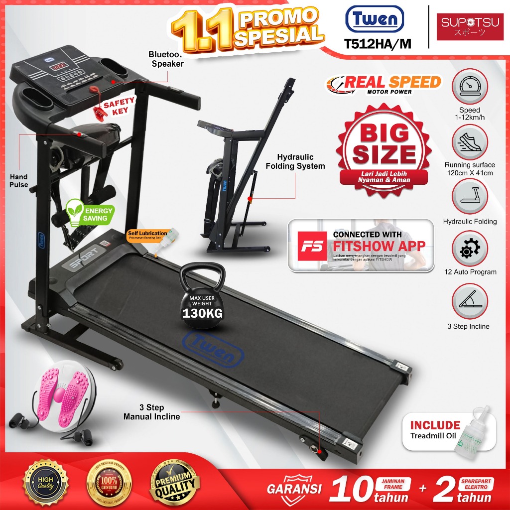 TWEN T512HA +M Treadmill Listrik Treadmill Portable Treadmill Multifungsi Treadmil Lipat Treadmill Electric Low Watt Alat Olahraga