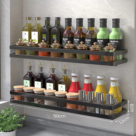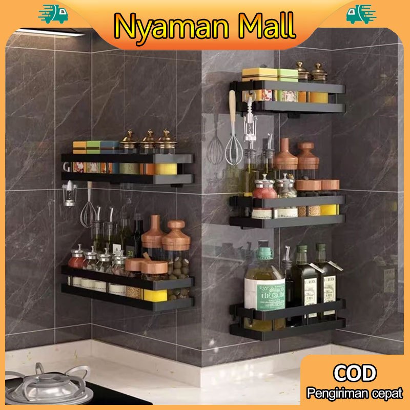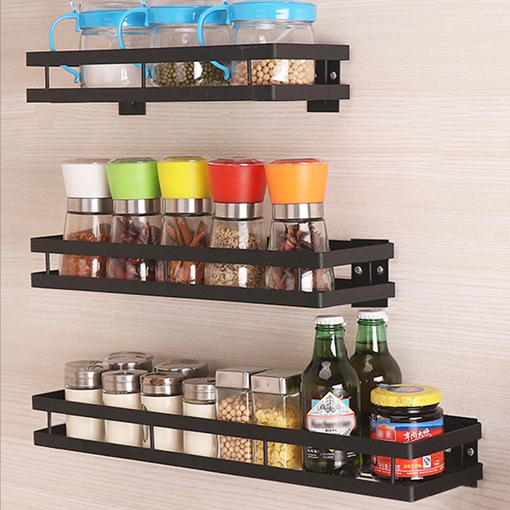 Rak bumbu yang terpasang di dinding rak penyimpanan dapur rak bumbu hitam rak rempah-rempah bebas pukulan rumah lemari