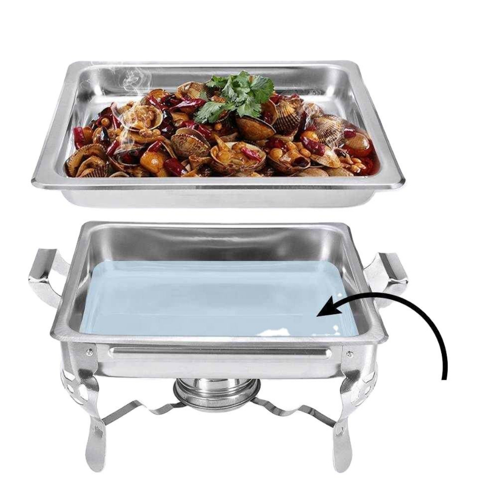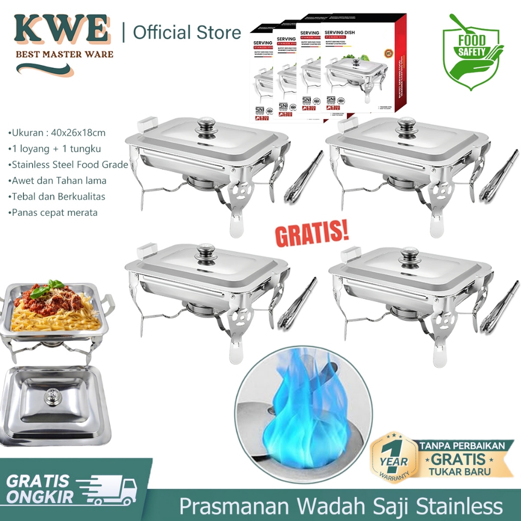 KWE 8in1 4 Set With Box Premium 40CM Prasmanan Wadah Saji Stainless + 4 Capitan Stainless 1 loyang + 1 tungku