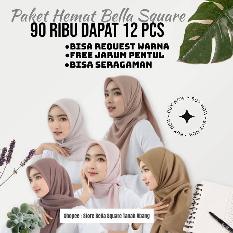 Bella Square (90 Ribuan Dapat 12 Pcs) Hijab Segi Empat Pollycotton