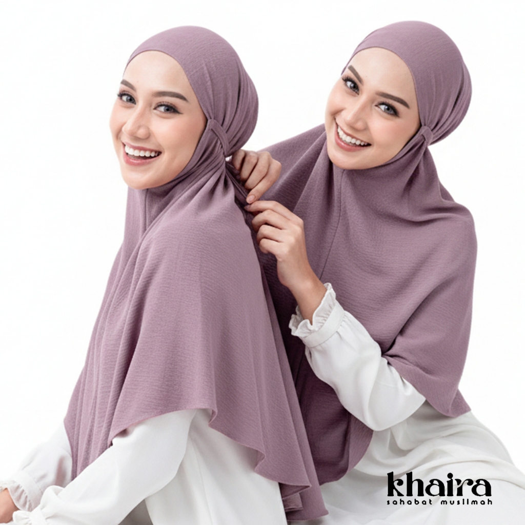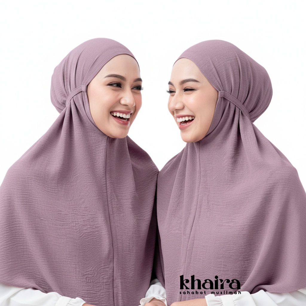 Khaira | Bergo Maryam Tali Jilbab Hijab Jumbo Non Pet Bahan Crinkle Airflow Premium Ungu