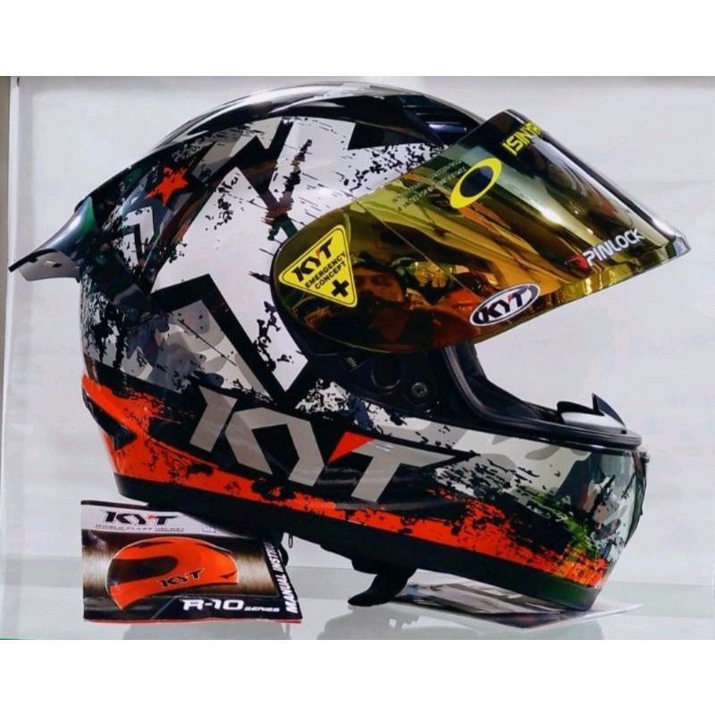 kyt r10 seri#3 aqua red paket ganteng free spoiler +stiker full visor SNI-DOT