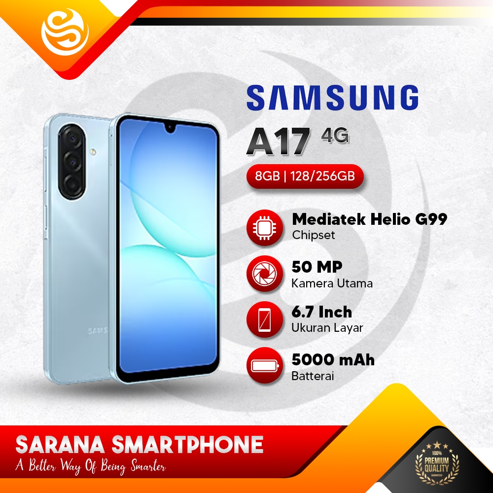 Samsung A17 4G (8+8/128GB) (8+8/256GB) MediaTek Helio G99 HP Samsung Terbaru - Garansi Resmi