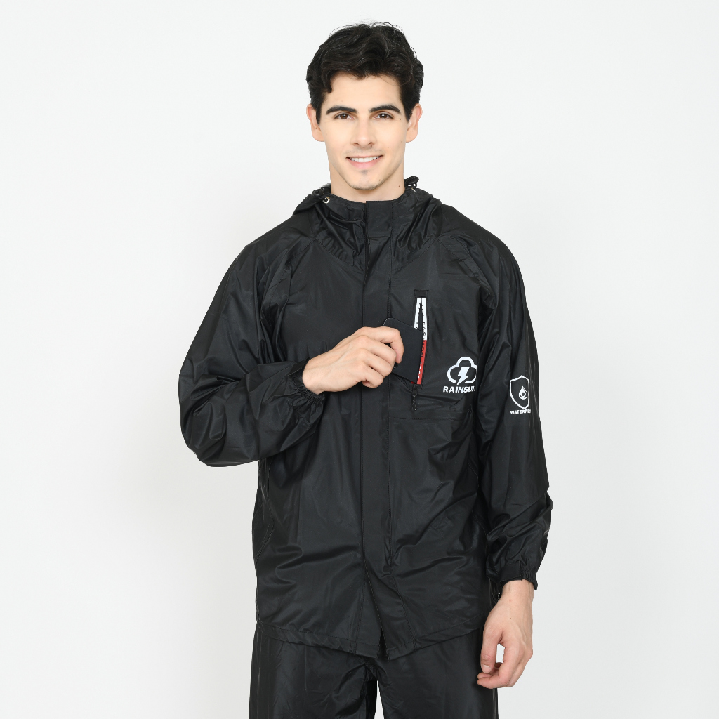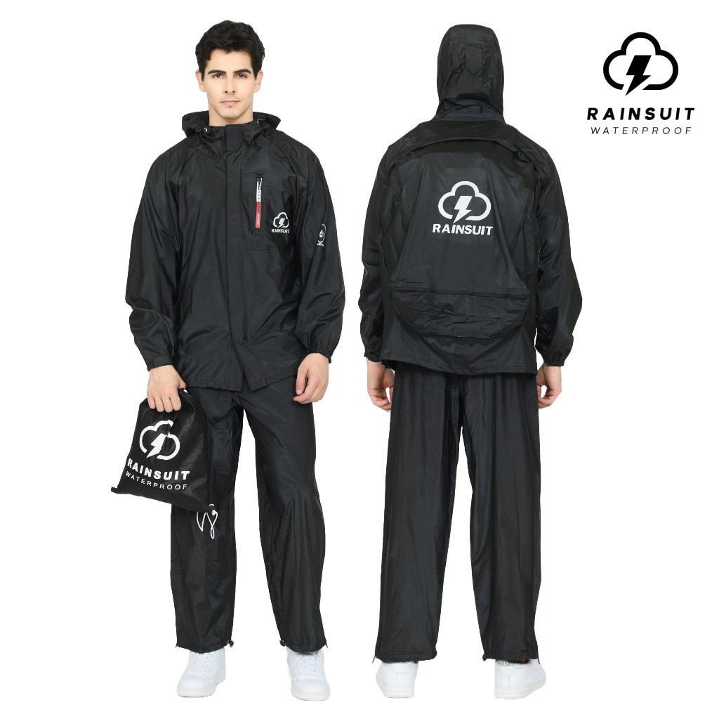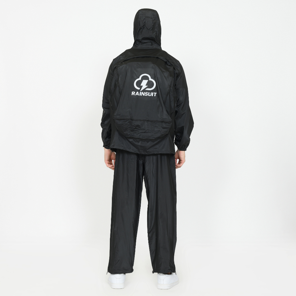 RAINSUIT Jas Hujan Raincoat Backpack Ransel Outdoor Setelan Dewasa Pria Wanita Bahan PVC Warna Hitam