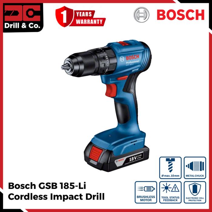 Bosch GSB 185-LI Cordless Brushless Impact Drill With Accessories / Mesin Bor Tembok Baterai Set