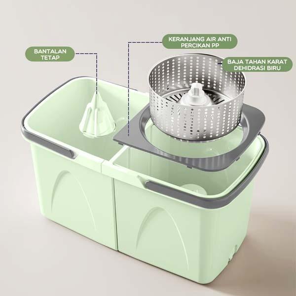 BONBOX BCT706 Super Mop Kain Fiber dengan Ultra Spin Mop Ember Dapat Dilepas Alat Tongkat Pel