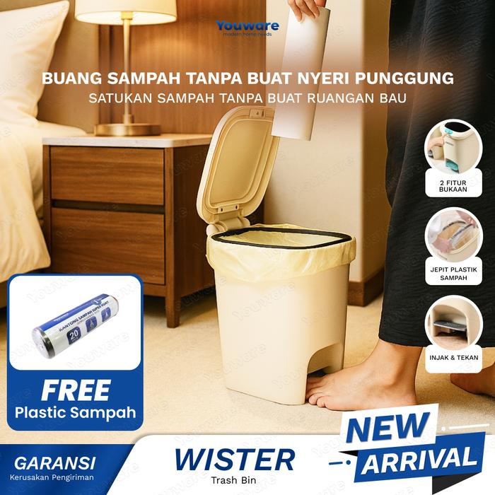 Youware - Wister Tempat Sampah 2 Fitur Buka ( Injak dan Tekan untuk Membuka Tutup ) Elegan dan