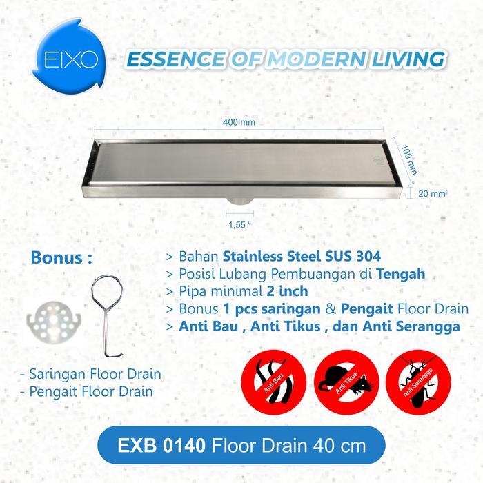 Saringan Got Floor Drain Panjang 40 cm EIXO RUCCHETTI EXR 0140 - Finishing Hitam Black, Chrome, dan