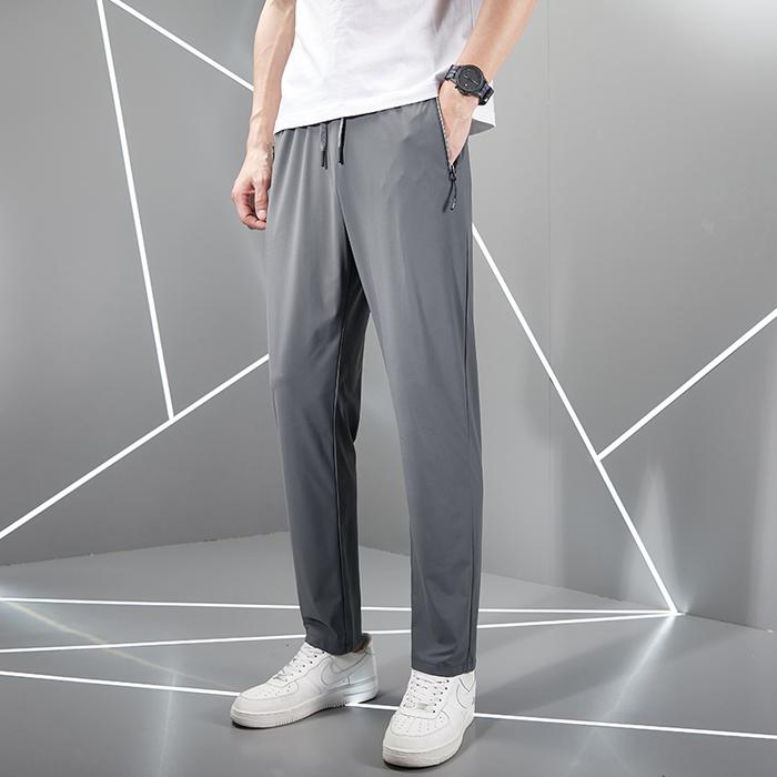 Celana Panjang Unisex Saku Ritsleting Celana Cepat Kering icy Silk Keren Ringan Bernapas Elastisitas