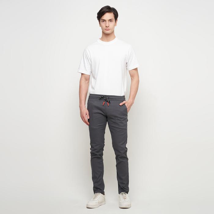 Emoline Celana Chino Panjang Pinggang Karet Abu Katun Stretch Celana Pria Panjang Pendek Cargo Slim