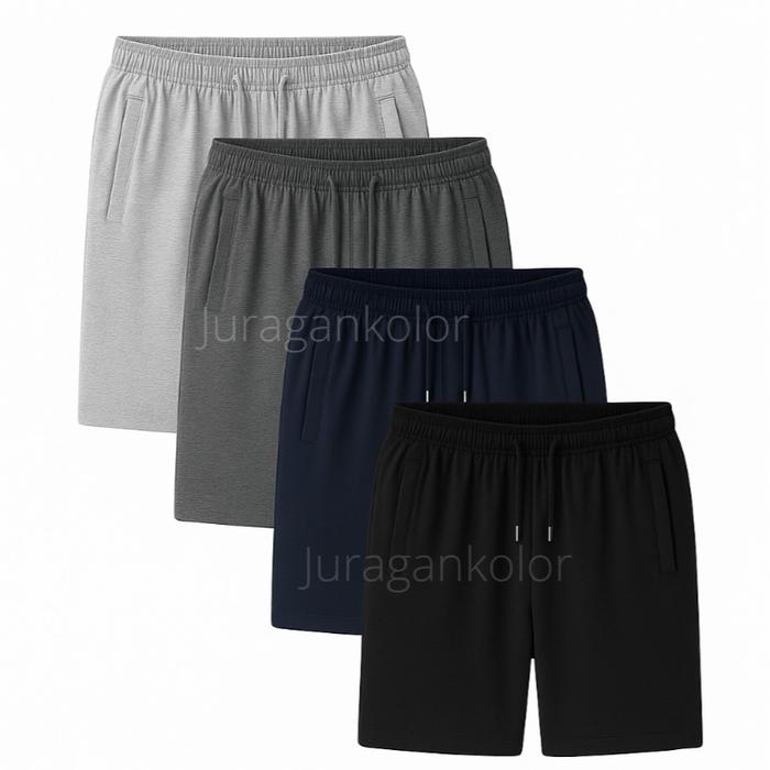 Dapat 4 Pcs - Celana Pendek Pria Wanita Santai Polos Kaos Baby Terry Celana Pria Panjang Pendek