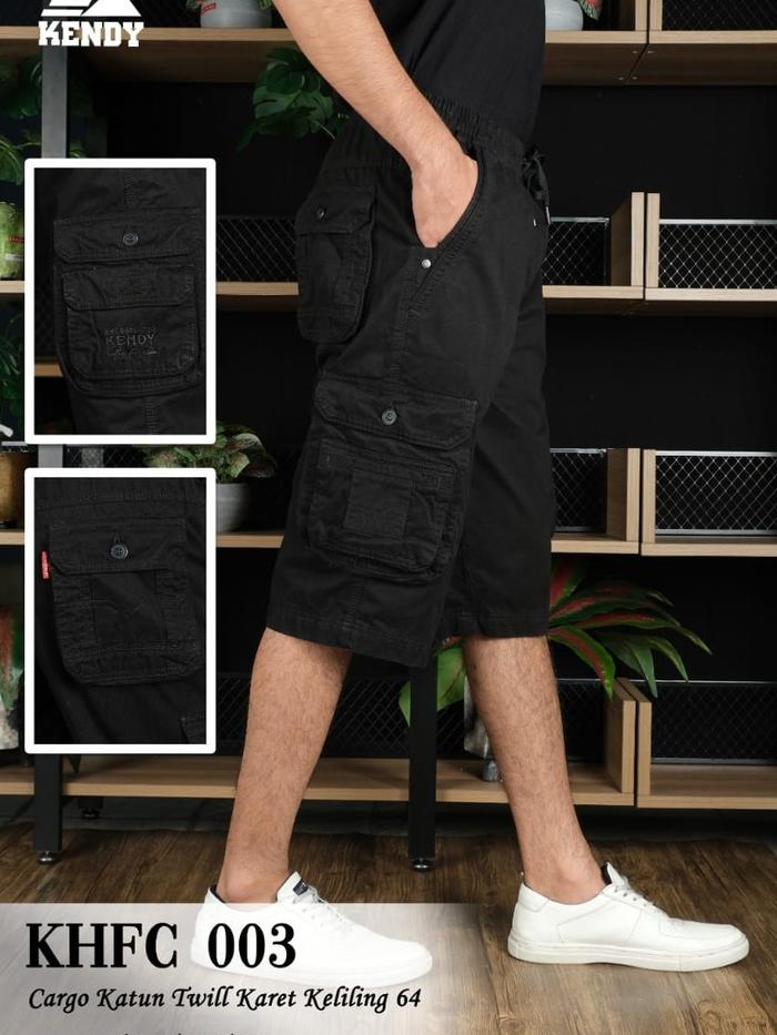 Celana KENDY Original Pendek Cargo RIP (Lingkar Karet) HFC 0047 Kantong Twill Gunung Celana Pria