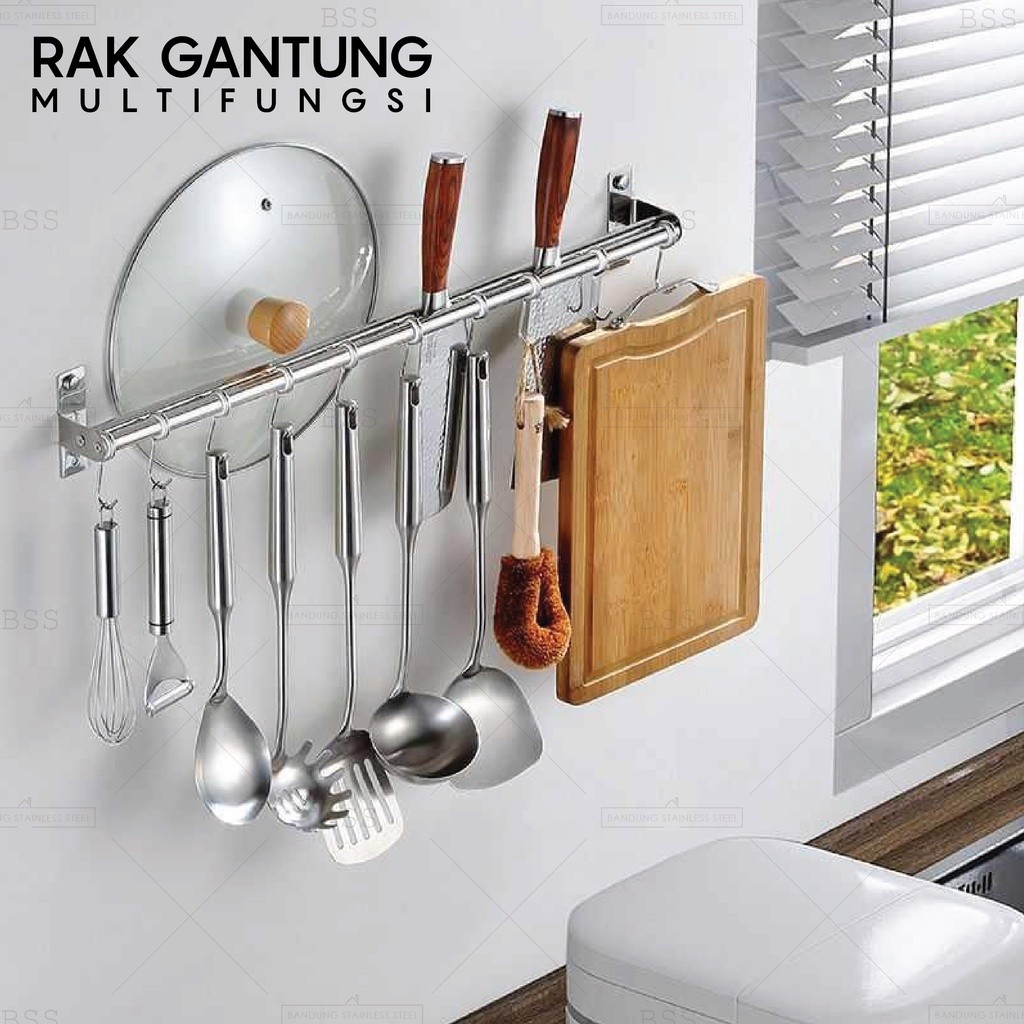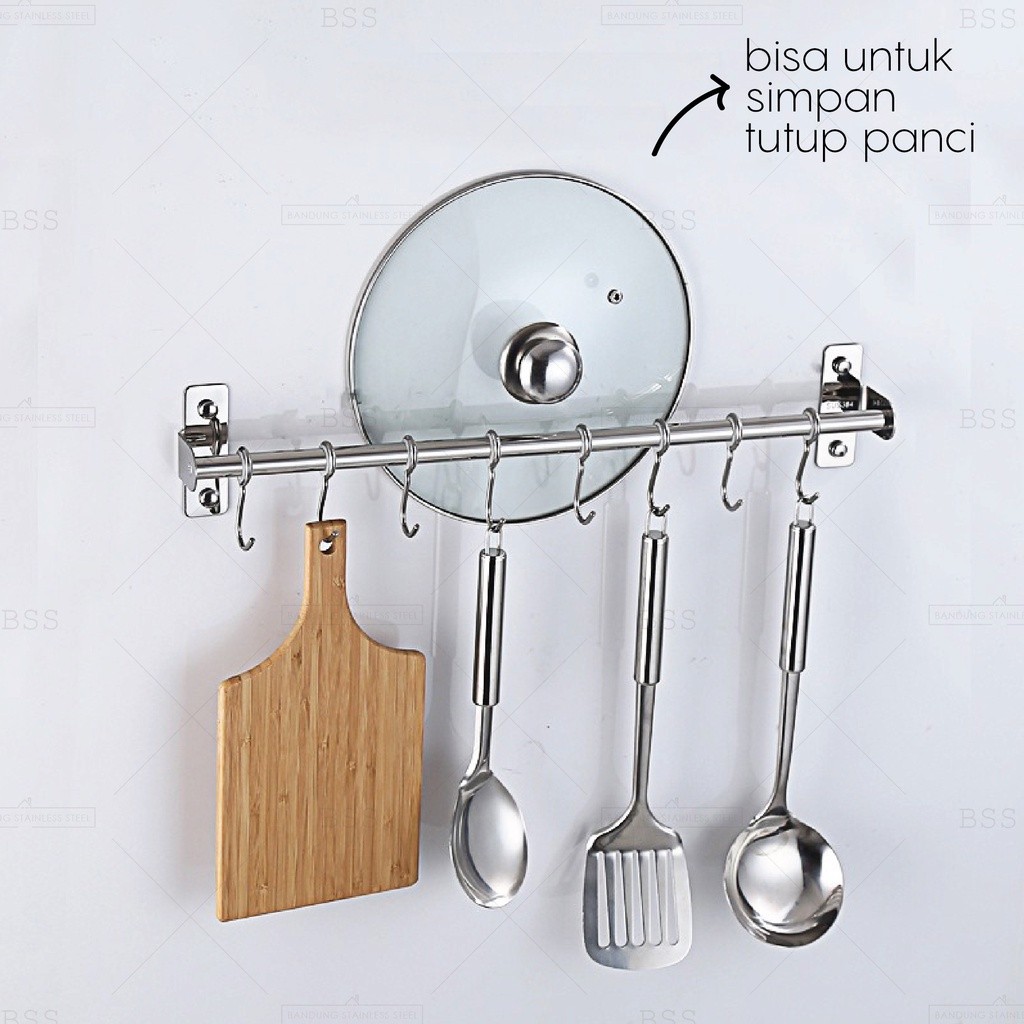 Kitchen bar 60cm 80cm 100cm single double gantungan rak dapur pisau panci stainless BOX