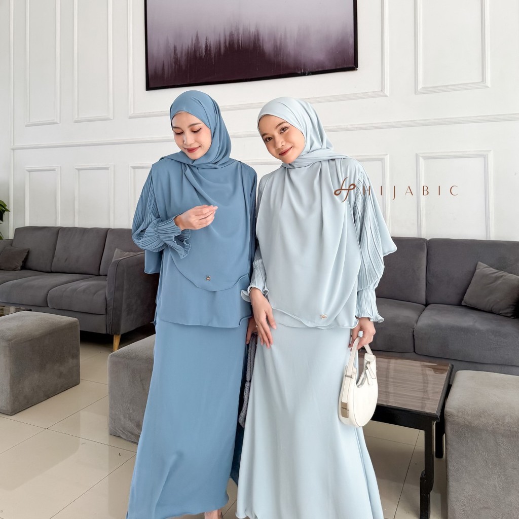 Hijabic - Rhania Pleats Set / Setelan Wanita Muslim Polos dengan Lengan Plisket & Anti UV (TIDAK TERMASUK HIJAB)