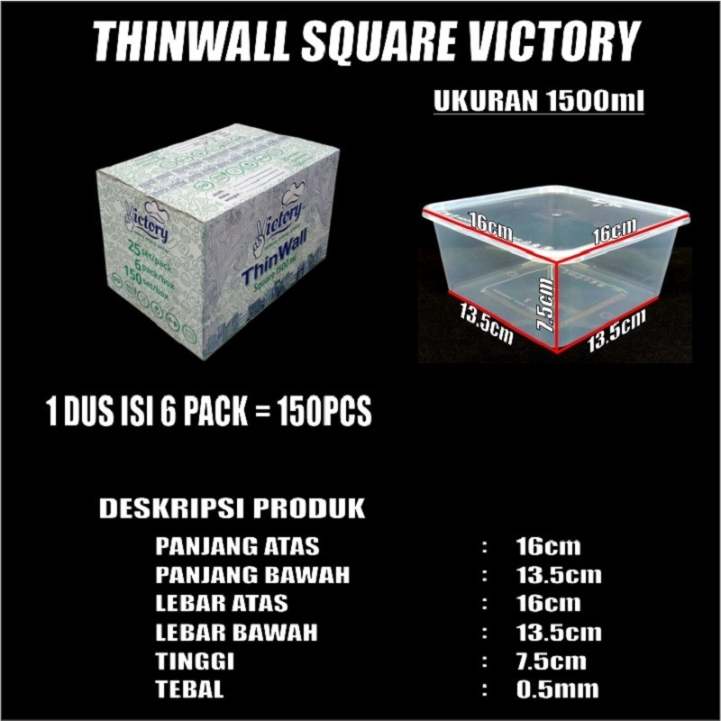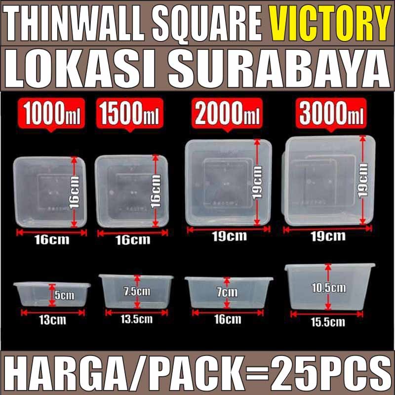 Thinwall SQ Tebal 1000ml 1500ml 2000ml 3000ml Pack Kotak Makanan Square Plastik SBY