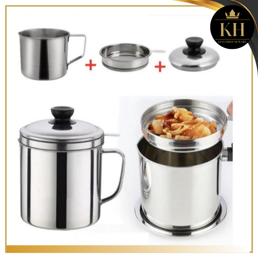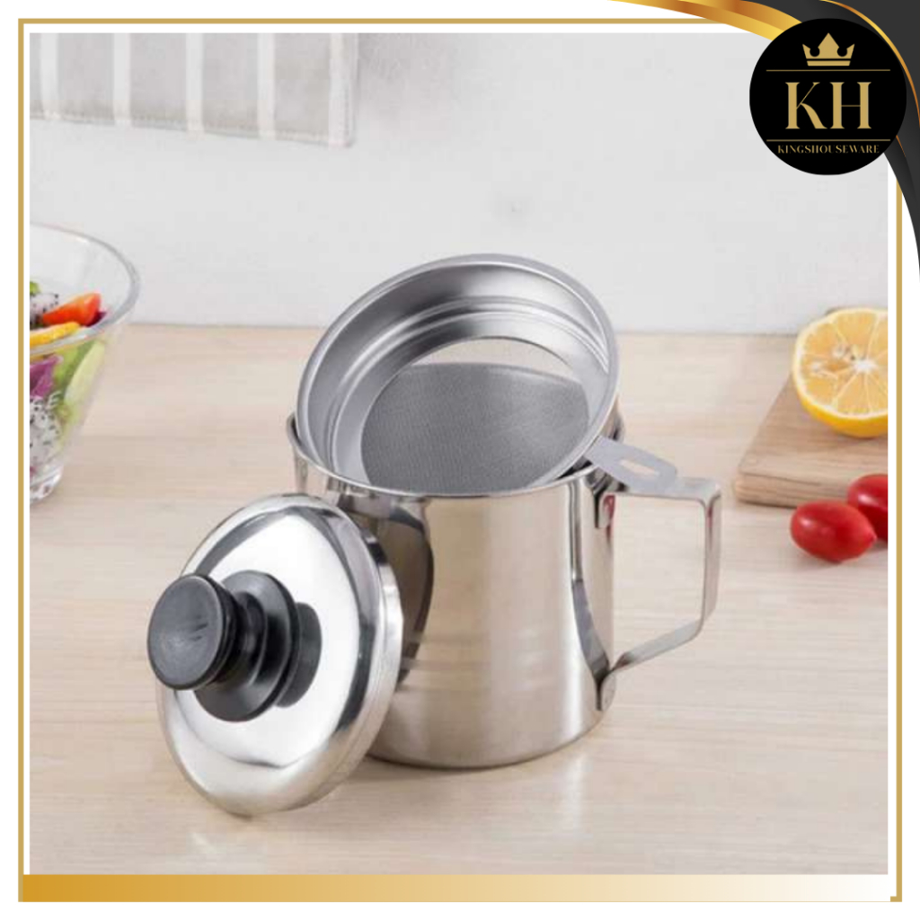 KH-OIL POT STAINLESS 1,3 LITER MUG GELAS SARINGAN TEMPAT WADAH OIL POT 1,2 LITER OIL POT WADAH MINYAK GORENG