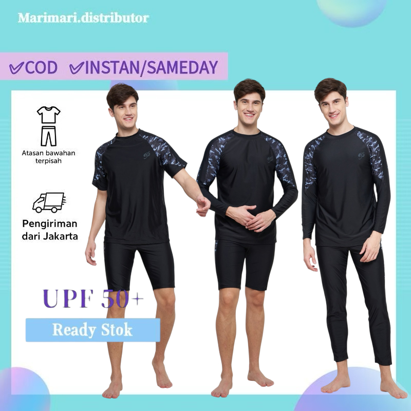 Baju renang murah antiuv satu set pakaian celana lengan pendek dewasa cowok pria 91024 91025 91026