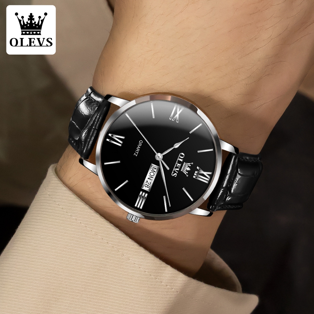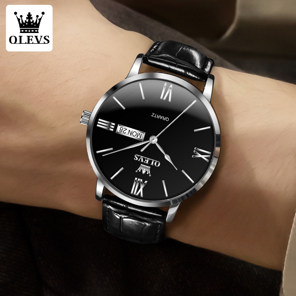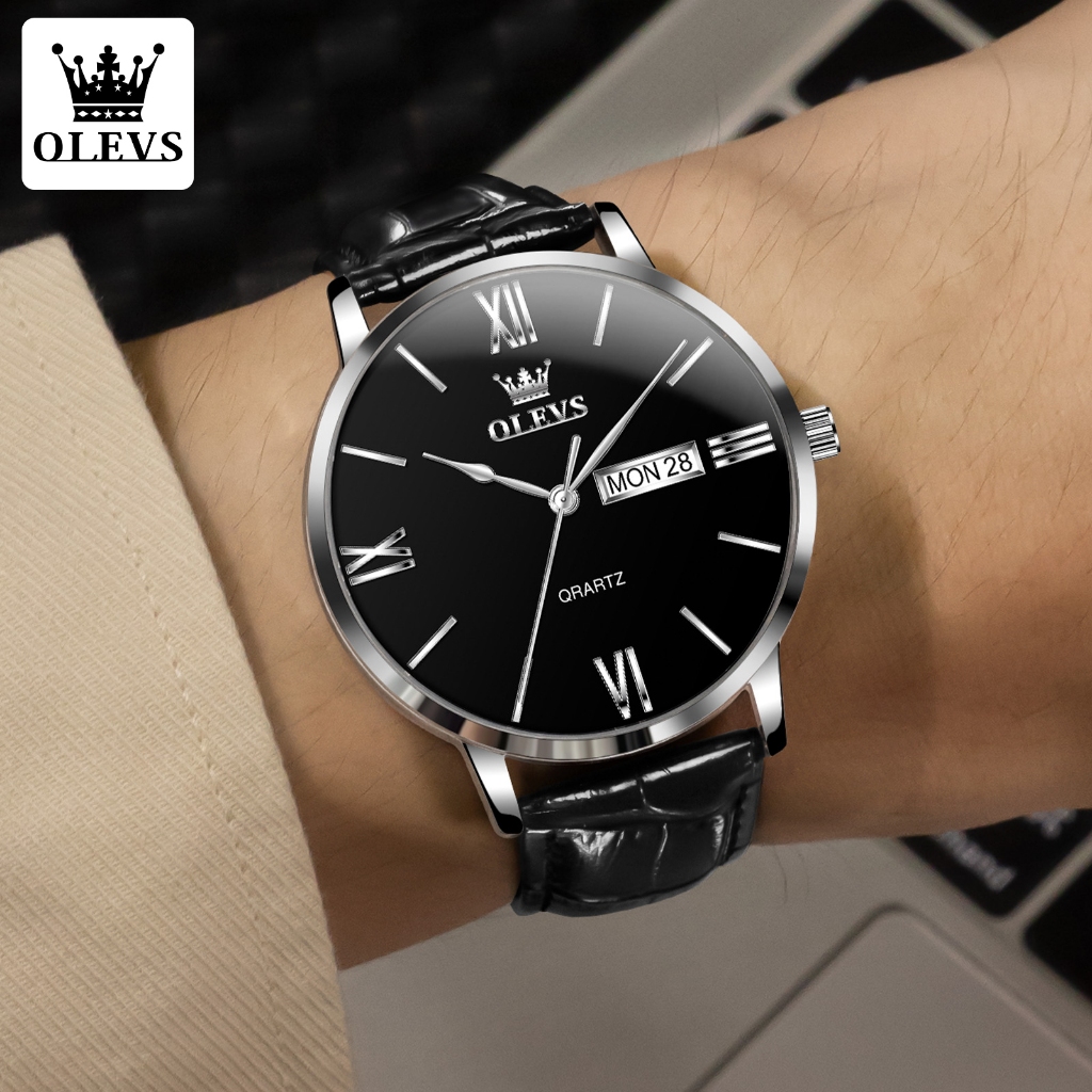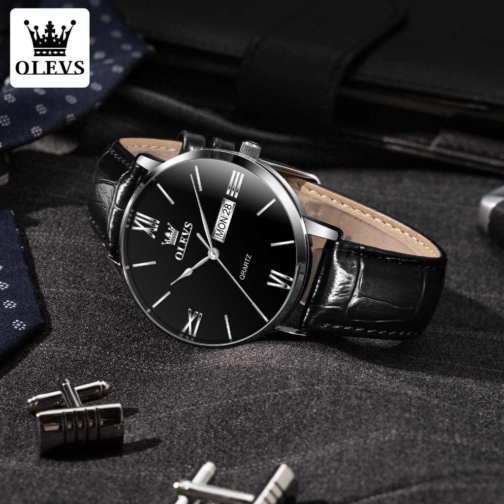 OLEVS Jam Tangan Pria Mewah Original 100 PERSEN Anti Air Kuarsa Bisnis Men Watches Tali Kulit Analog Jam Tangan Cowok Kaledner 5010