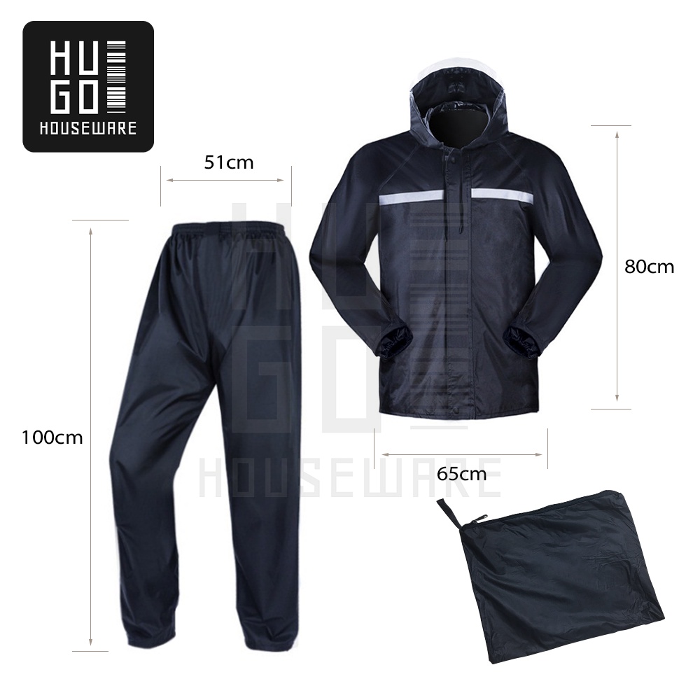 Jas Hujan Setelan Premium All Size Pria Wanita Tebal Anti Angin HUGO