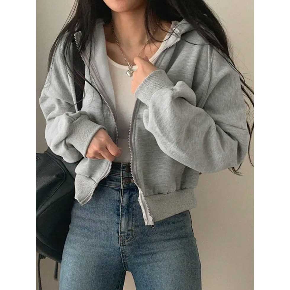 Jaket Hoodie Zipper BASIC CROP POLOS (LD 110, P 48)