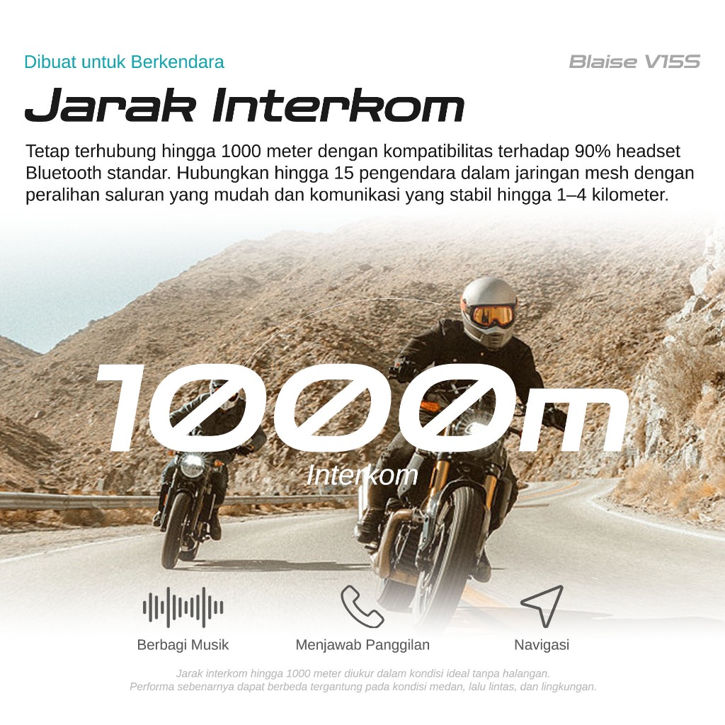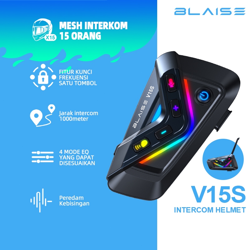 BLAISE V15S Mesh Intercom Headset Sepeda motorcycle Headset Support 15 Riders Musik Share waterproof